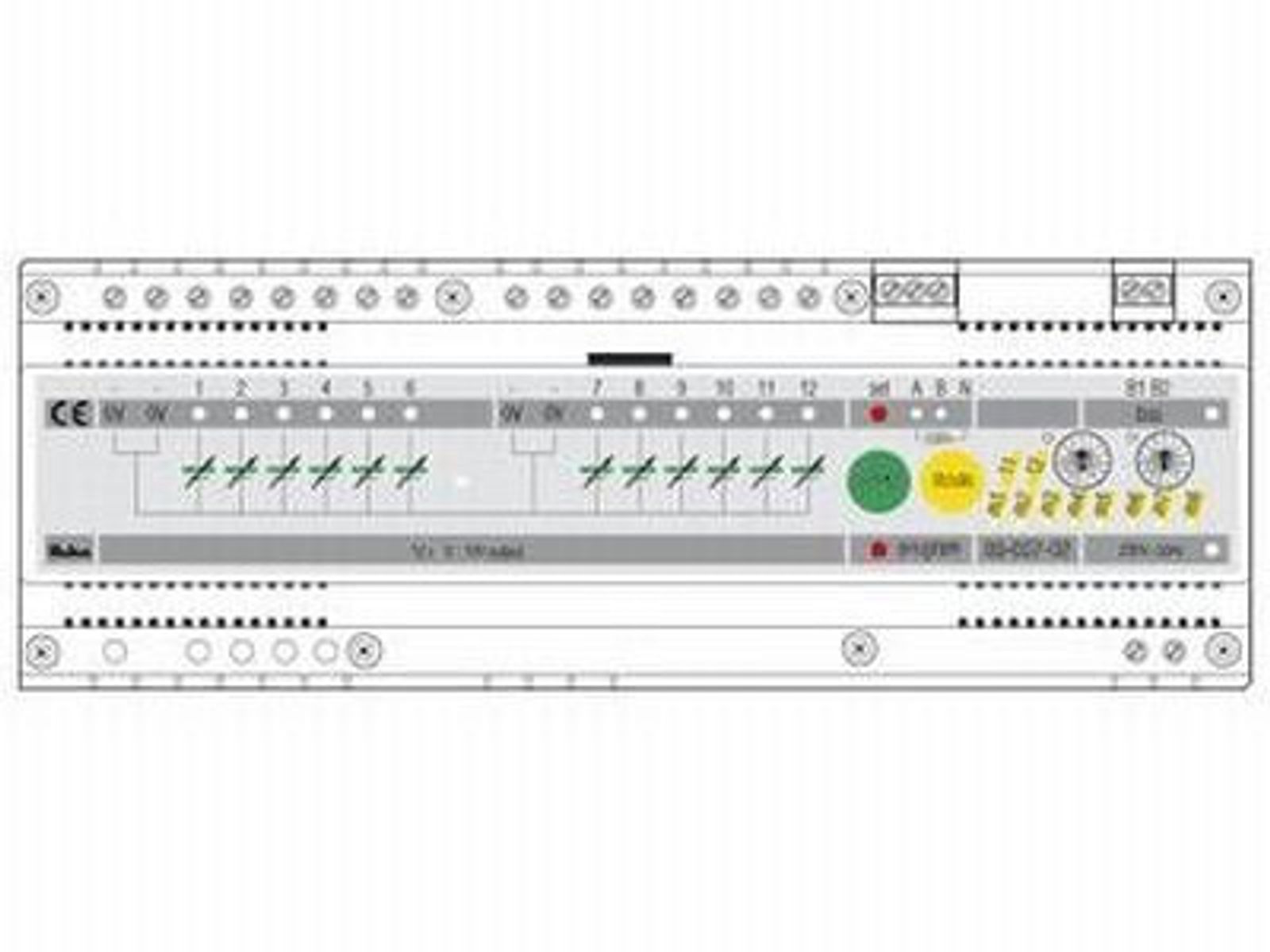 Deze dimcontroller heeft 12 spanningsgestuurde 0-10V-uitgangen en wordt gebruikt om één of meerdere vermogendimmers aan te sturen en lichtsferen te creëren. Elke compatibele 0-10V-dimmer met galvanisch gescheiden stuuringang kan je probleemloos op de dimcontroller aansluiten. Ingestelde lichtsferen kunnen opgeslagen en met één druk op de knop terug opgeroepen worden. Verder heeft de dimcontroller twee 230V-ingangen en een diagnoserapportering.
