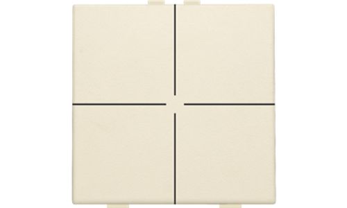 Met deze drukknop voer je vier bedieningen uit. Hij wordt via een klikmechanisme op de muurprint bevestigd. Mechanisme inclusief toets. Afwerkingskleur: cream.