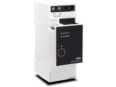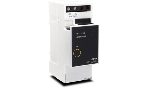 Via de Nikobus interface koppel je een Nikobus installatie met een Niko Home Control installatie. Hiervoor is de interface voorzien van twee schroefklemmen.