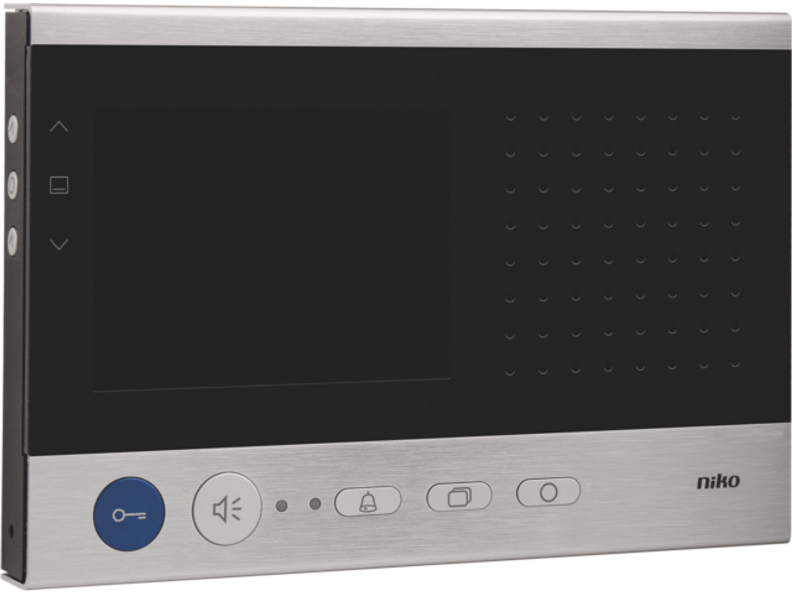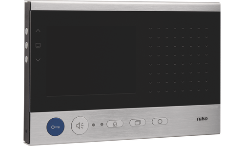 Deze compacte opbouwvideobinnenpost met kleurenscherm is vervaardigd uit aluminium en is standaard uitgerust met de volgende functies: een gesprek voeren met een bezoeker, toononderscheid voor een oproep aan een appartementsdeur, hoofddeur of interne oproep, licht schakelen, deur openen, volume en beeld regelen, beltoon uitschakelen, camerabeelden activeren, bezet- en oproepaanduiding met leds. De bediening gebeurt via 5 functietoetsen en een menu dat kan geraadpleegd worden via 3 navigatietoetsen aan de zijkant van het toestel. De functionaliteit van één toets kan vrij toegewezen worden en deze kan ofwel een stuurfunctie voor relais 10-831 uitzenden, een parallelle oproep zijn, een interne oproep maken, het licht schakelen, bel-en-kom-binnen-functie instellen of een doorschakelfunctie activeren. De communicatie met de bezoeker verloopt handenvrij.