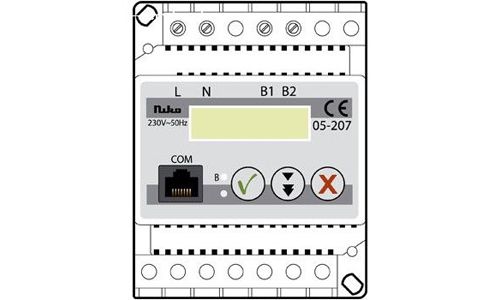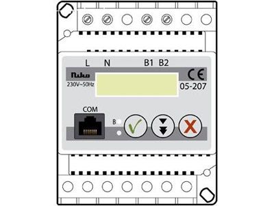 Deze module verbindt de feedbacktoetsen of het touchscreen met de Nikobusinstallatie. In een installatie is één feedbackmodule nodig per 24 feedbacktoetsen of per touchscreen. Per installatie kunnen max. 5 feedbackmodules gebruikt worden. De module wordt via de PC geprogrammeerd.