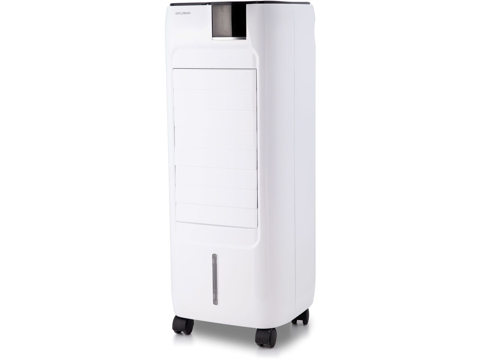 Met een air cooler houd je het midden tussen de verfrissende wind van een ventilator en de verkoelende werking van een air conditioning. De prijs zit dan ook tussen de twee in. Met de air cooler krijg je een verfrissend effect en zal de temperatuur enkele graden zakken. Je kan de air cooler vullen met water of met ijs voor een meer verfrissend effect. Bovendien bevochtigt het eveneens de lucht, wat op zich ook al een fijn gevoel geeft. Dankzij de wieltjes rol je hem makkelijk mee naar de ruimte waar je je in bevindt.