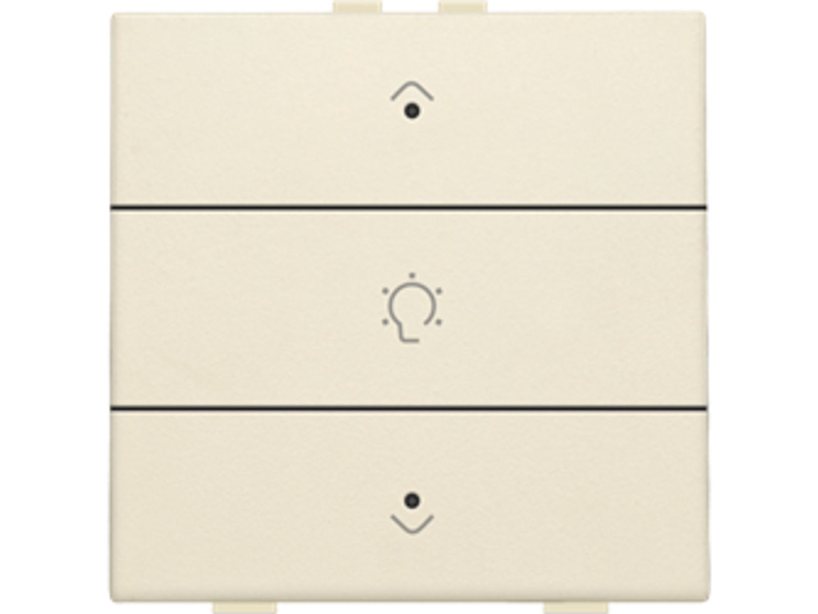Met deze drukknop dim je één lichtpunt of lichtkring. Hij wordt via een klikmechanisme op de muurprint bevestigd. Een led geeft aan of het licht op- of neergedimd is. Mechanisme inclusief toets. Afwerkingskleur: cream.