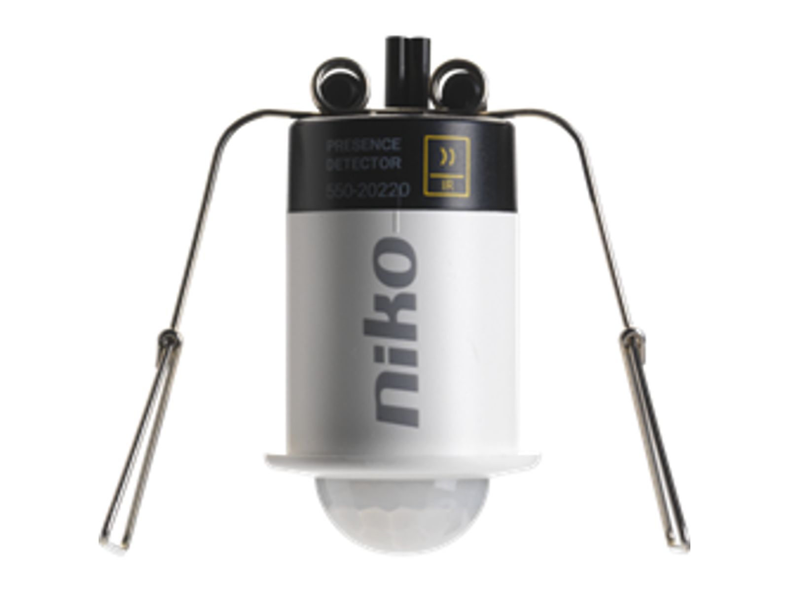 De minimelder detecteert bewegingen en veranderingen in lichtsterkte. Aan de hand van deze gegevens kunnen Niko Home Control functies geactiveerd of gedeactiveerd worden. Het product is geschikt voor plafondmontage in verlaagde plafonds, zowel binnen als buiten.