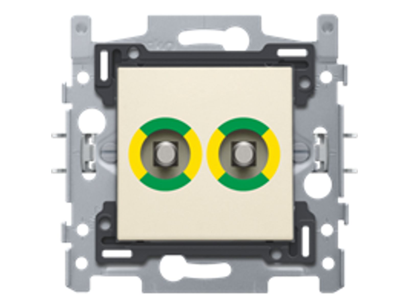 Samengestelde contactdoos (sokkel en afwerkingsset). De sokkel is uitgerust met schroefbevestiging. De contactdoos heeft een potentiaalvereffening. Afwerkingskleur: cream