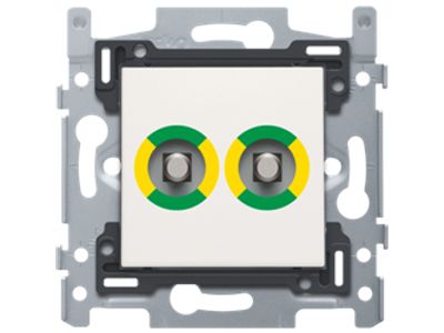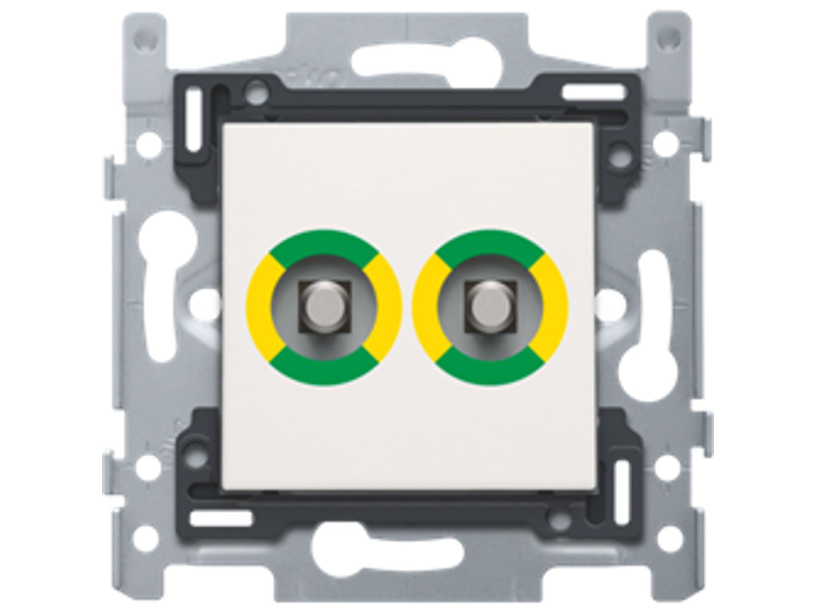 Samengestelde contactdoos (sokkel en afwerkingsset). De sokkel is uitgerust met schroefbevestiging. De contactdoos heeft een potentiaalvereffening. Afwerkingskleur: white