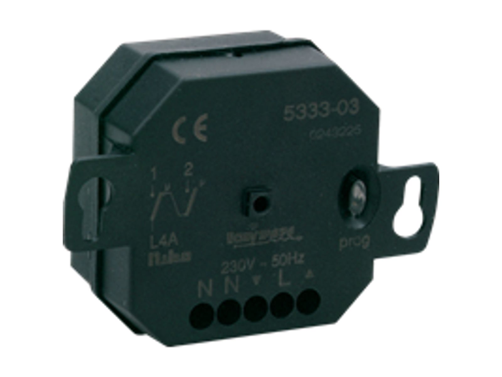 Deze miniontvanger gebruik je voor de bediening van rolluiken en jaloezieën. Door zijn beperkte afmetingen monteer je hem heel gemakkelijk. Hij werkt met wand- en handzenders. Zijn looptijd bedraagt 90 seconden. Met de 2-knopsmodi kun je: