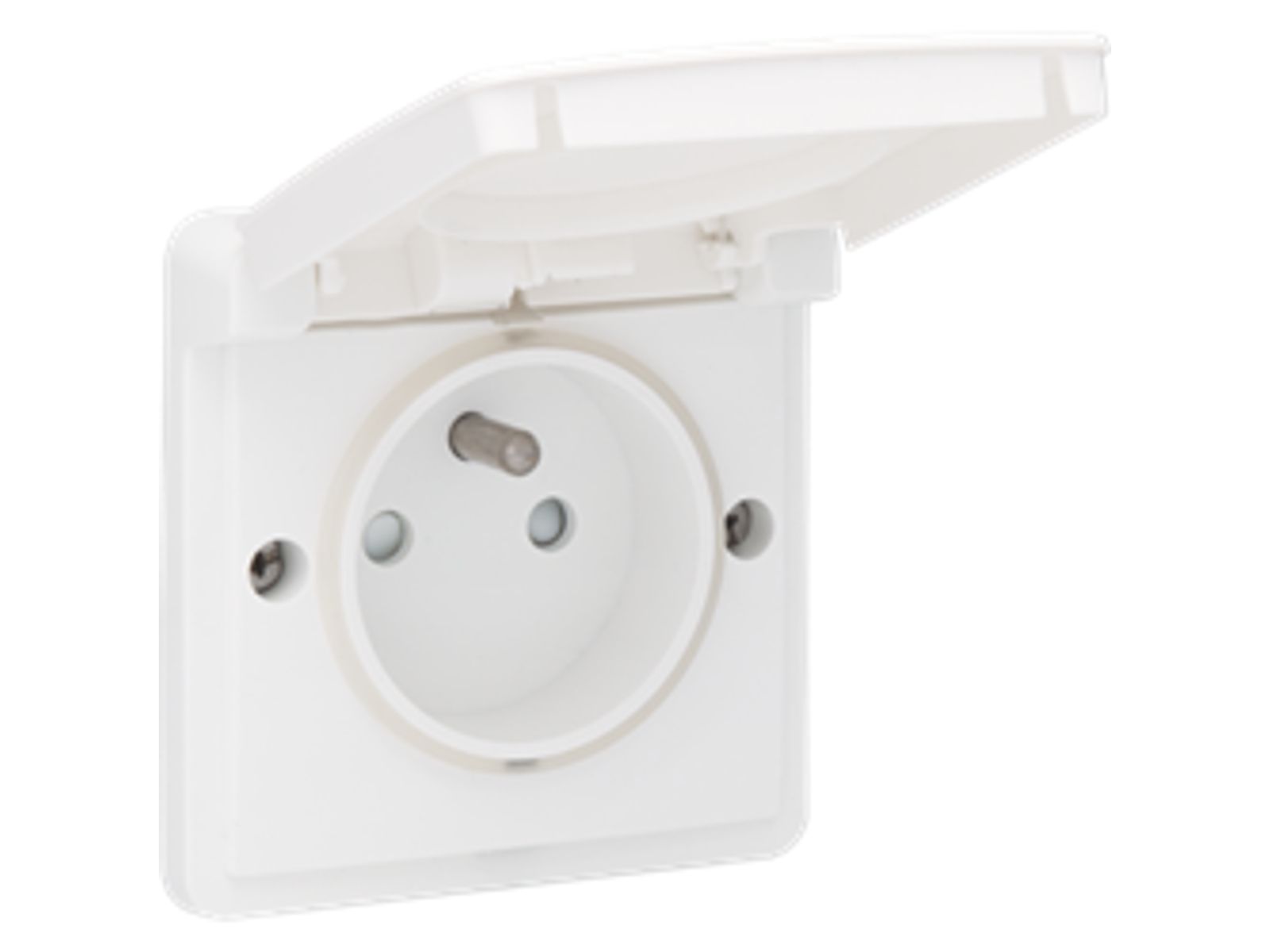 Deze opbouwwandcontactdoos is voorzien van penaarde, beschermingsafsluiters, met insteekklemmen en een beschermklep met scharnieren. Het mechanisme wordt in een spuitwaterdichte opbouwdoos geplaatst. Het geheel is spuitwaterdicht en hierdoor uitermate geschikt voor gebruik in vochtige ruimtes en veeleisende omgevingen. Kleurcombinatie: white.