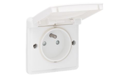 Deze opbouwwandcontactdoos is voorzien van penaarde, beschermingsafsluiters, met schroefklemmen en een beschermklep met scharnieren. Het mechanisme wordt in een spuitwaterdichte opbouwdoos geplaatst. Het geheel is spuitwaterdicht en hierdoor uitermate geschikt voor gebruik in vochtige ruimtes en veeleisende omgevingen. Kleurcombinatie: white.