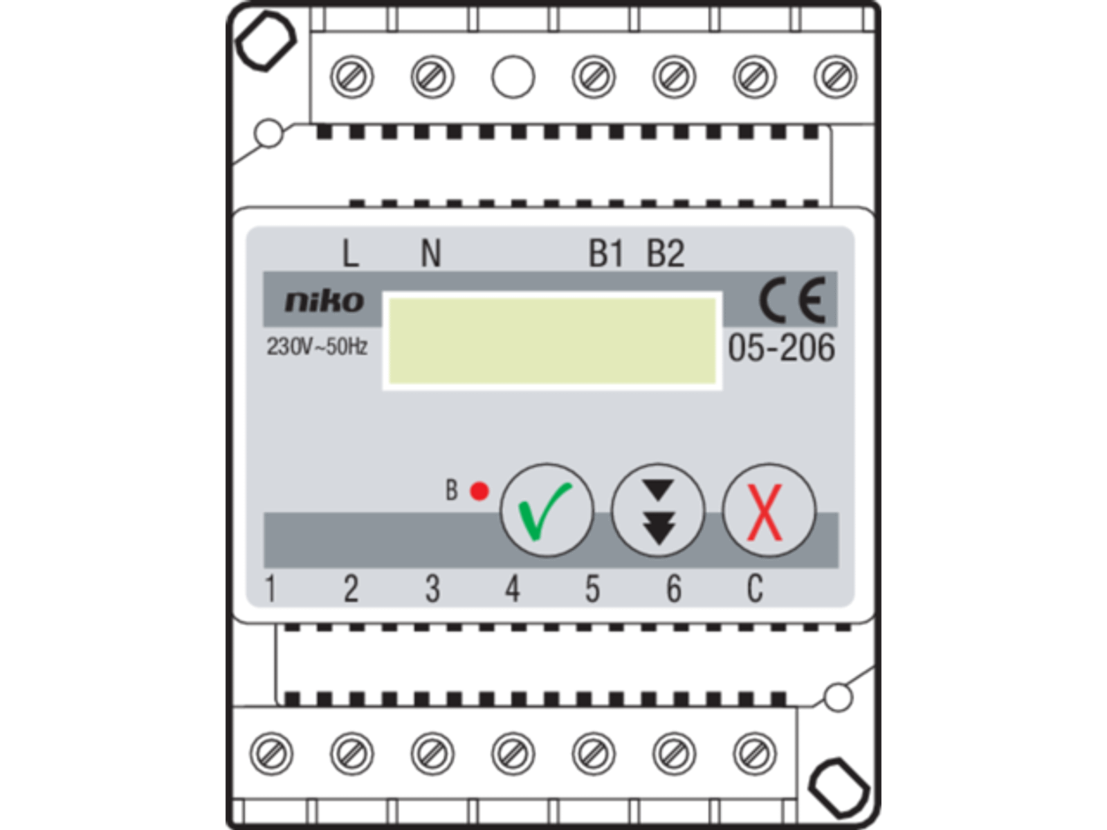 Deze binaire ingangsmodule heeft 6 digitale ingangen voor potentiaalvrije contacten en wordt rechtstreeks aan de Nikobus gekoppeld. Als een contact opent of sluit, wordt een telegram op de bus gezet. Het lcd-scherm heeft een manuele schakelaar en statusweergave. Typische toepassingen zijn: contacten van sloten, telefooninterfaces, alarminstallaties, lichtsensoren, …