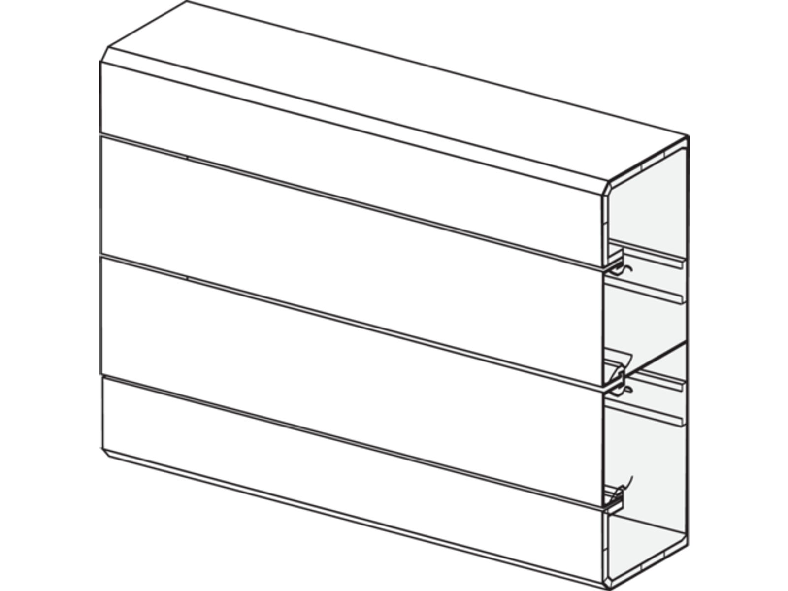 Dit installatiekanaal heeft een lengte van 2m en is 50mm diep en 160mm hoog. Het is voorzien van een deksel.