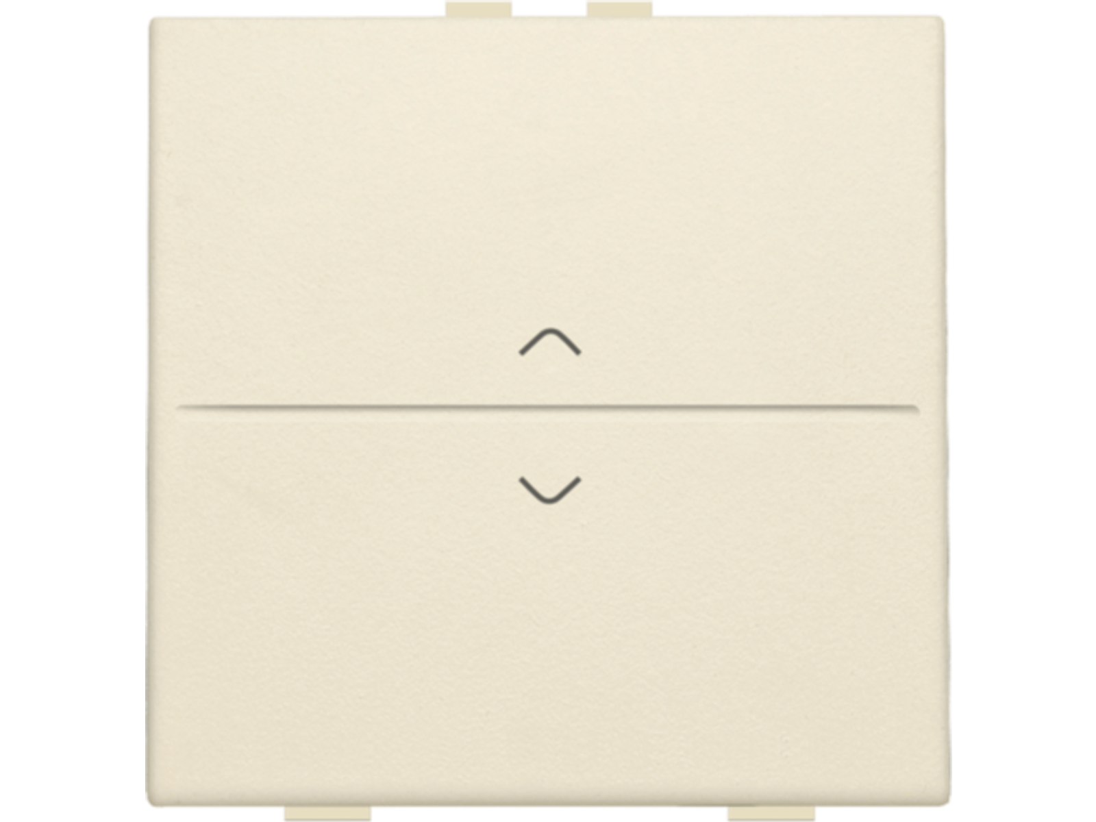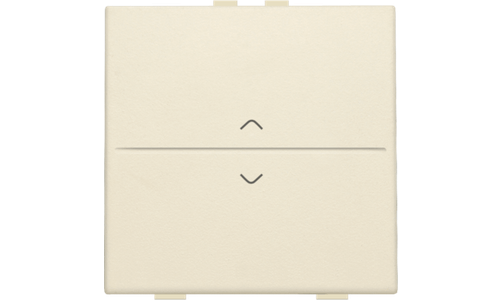 Een enkelvoudige toets met symbool 'op' en 'neer', voor een busdrukknop. Afwerkingskleur: cream.