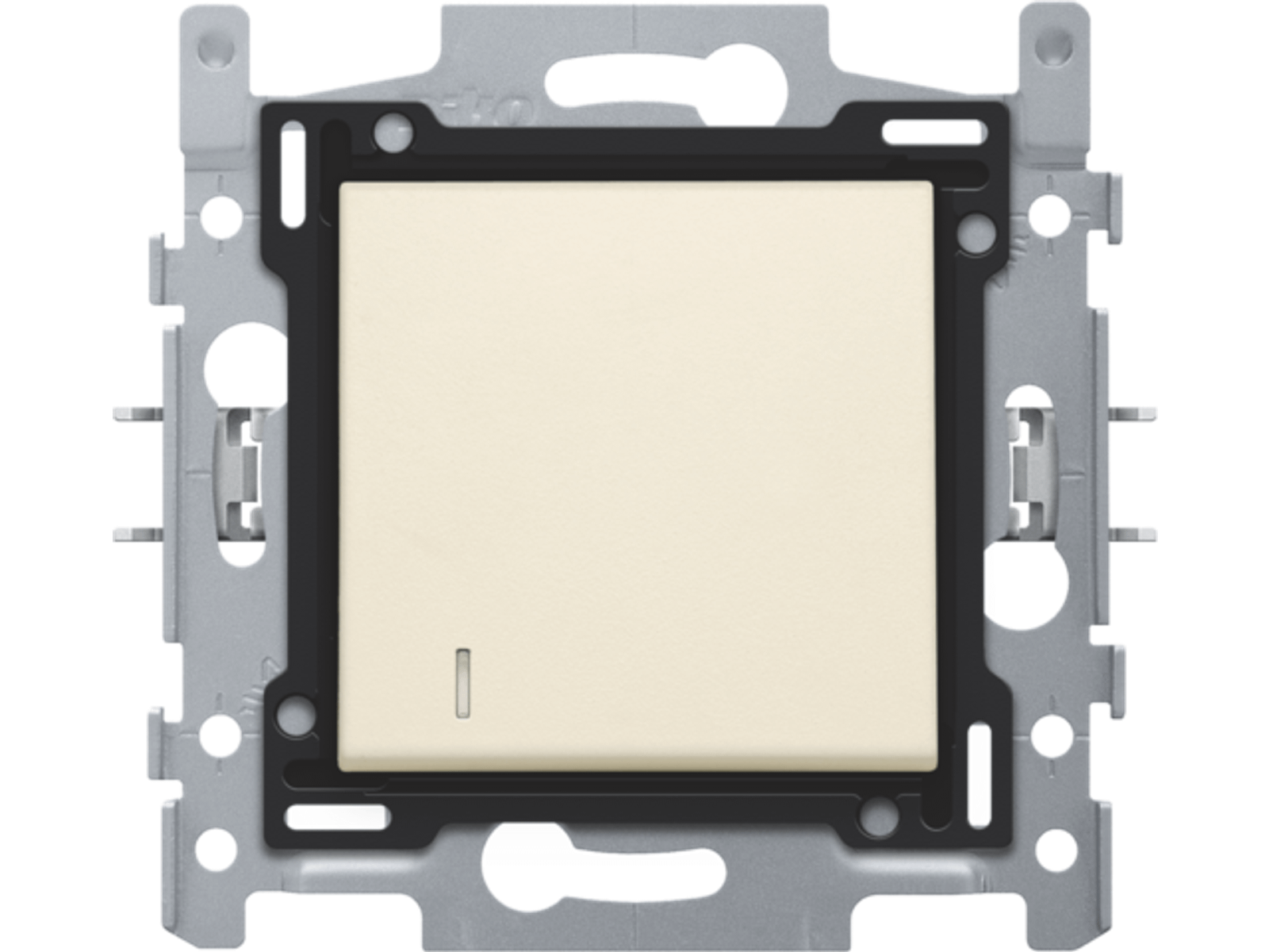 Samengestelde drukknop 250 V (sokkel en afwerkingsset). De drukknop wordt gebruikt voor 1 lichtpunt te bedienen. De lens in de toets biedt de mogelijkheid om een ledmodule erachter te plaatsen. Afwerkingskleur: cream
