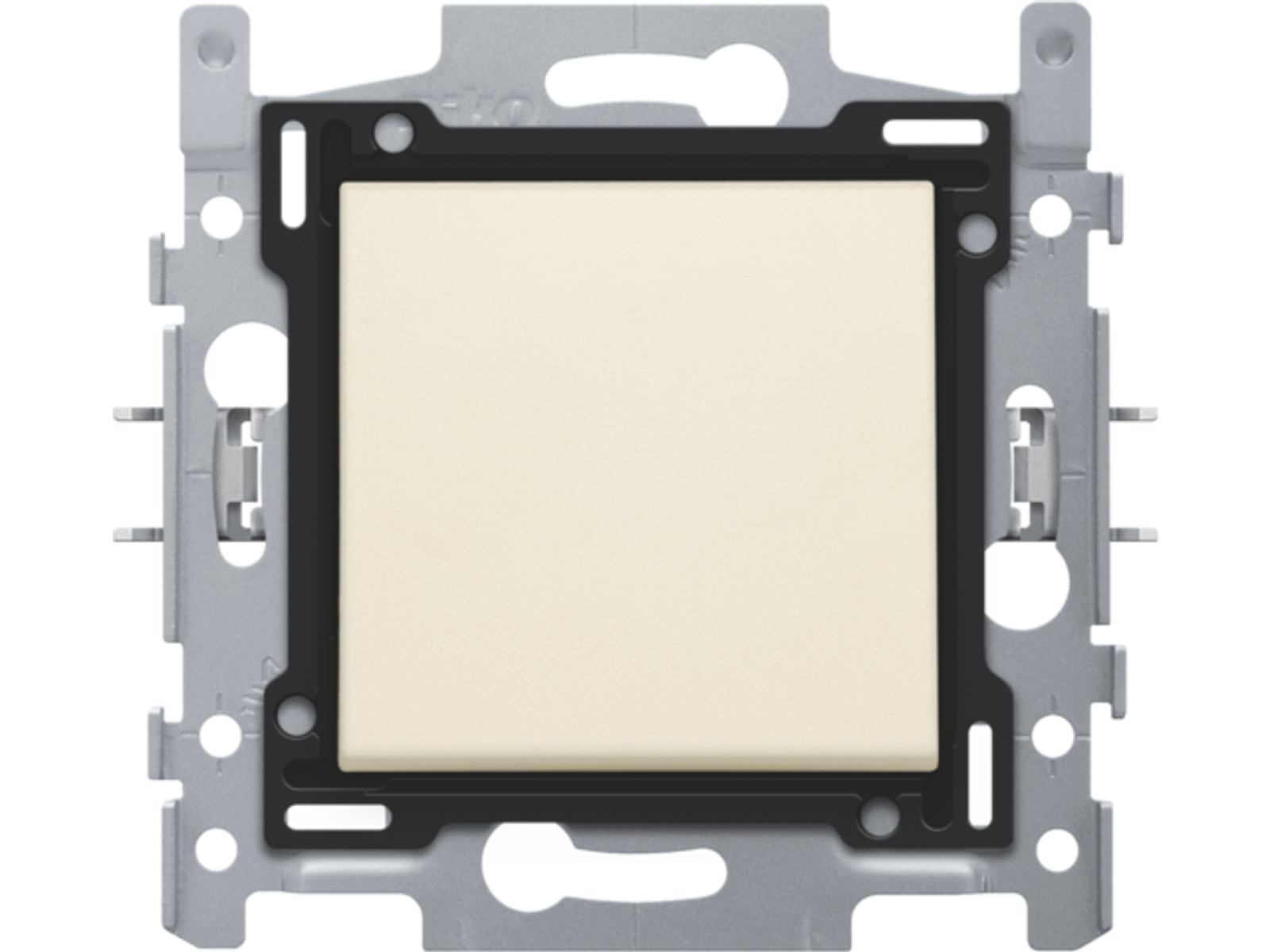 Samengestelde inbouwschakelaar (sokkel en afwerkingsset). De sokkel is uitgeust met insteekklemmen en klauwbevestiging. Met deze schakelaar kan je één lichtpunt bedienen. Afwerkingskleur: cream