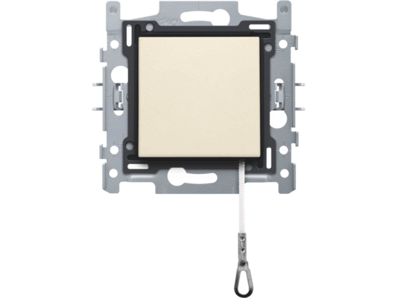 Samengestelde inbouwschakelaar (sokkel en afwerkingsset). De sokkel is uitgeust met insteekklemmen en klauwbevestiging. Deze schakelaar is uitgerust met een trekmechnanisme en wordt meestal gebruikt in slaapkamers. Met deze schakelaar kan je 1 lichtpunt bedienen vanop 2 plaatsen. Afwerkingskleur: cream