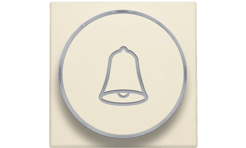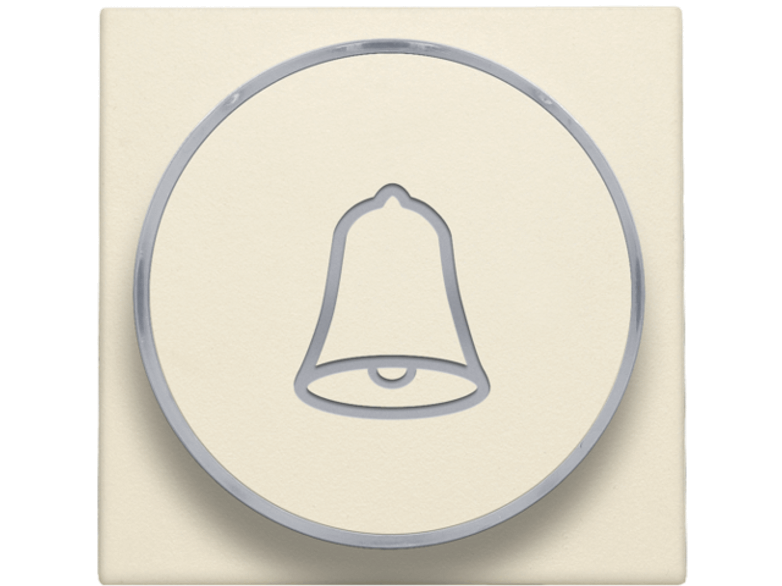 Afwerkingsset met doorschijnende ring met belsymbool voor drukknop 6 A met amberkleurige led met E10-lampvoet, cream