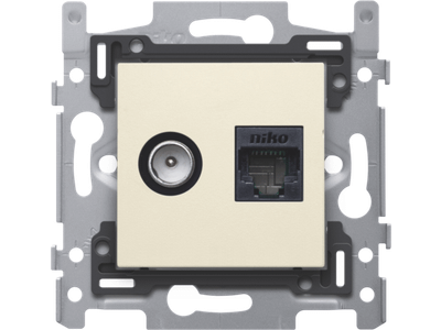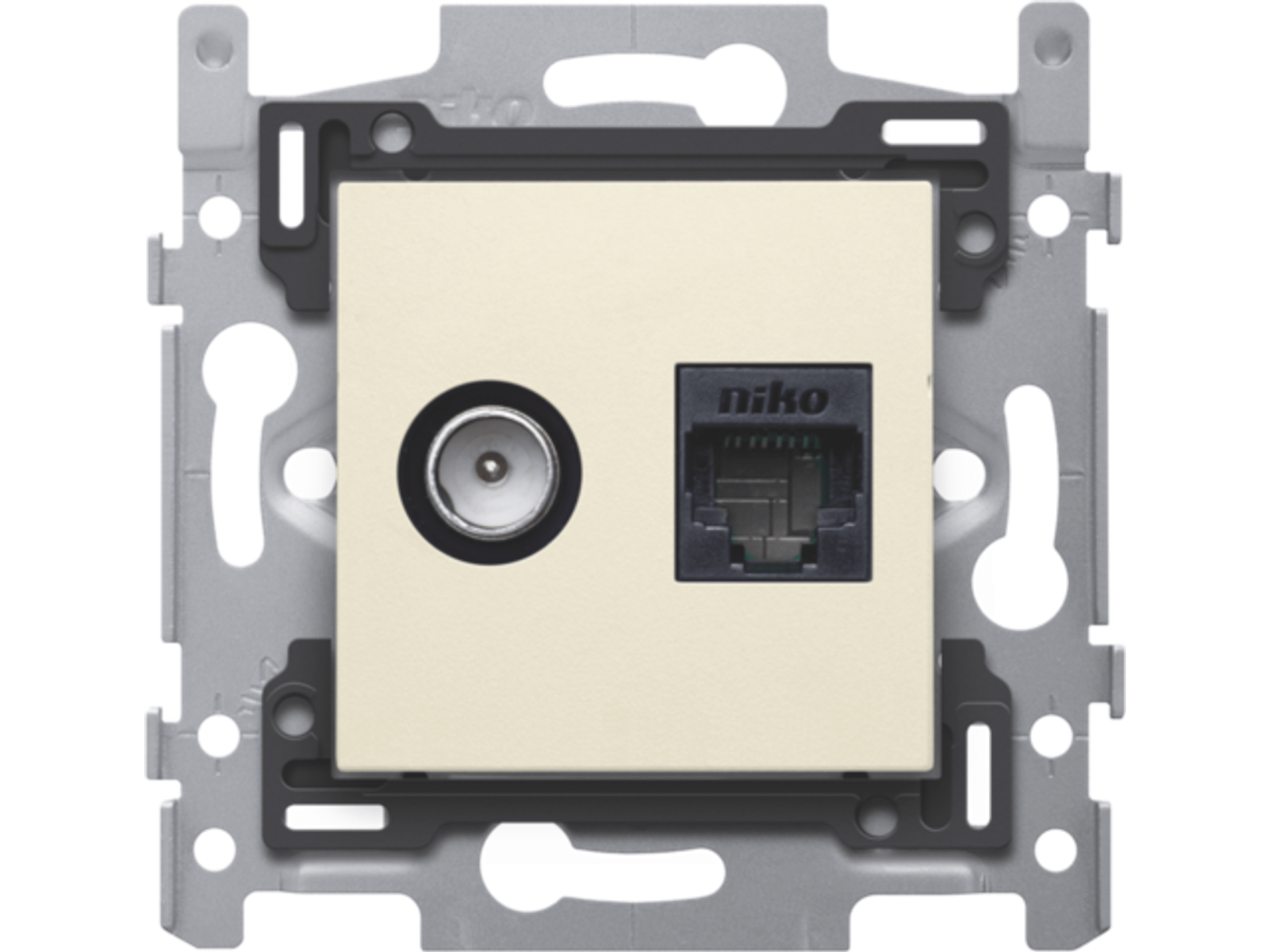 Combinatie coax met RJ45 aansluiting UTP Cat6A, vlakke uitvoering 60x71sokkel en afwerkingsset cream