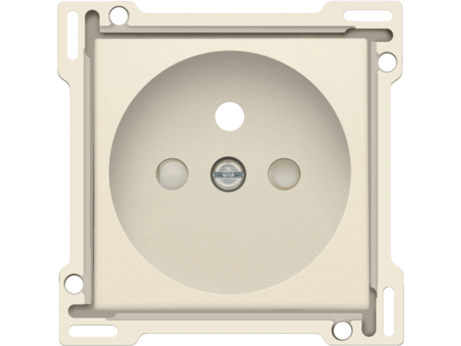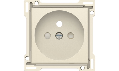 Centraalplaat voor inbouwstopcontact met penaarde en beschermingsafsluiters. Deze centraalplaat dient gebruikt te worden op een stopcontact met inbouwdiepte van 28,5mm. Afwerkingskleur: cream.