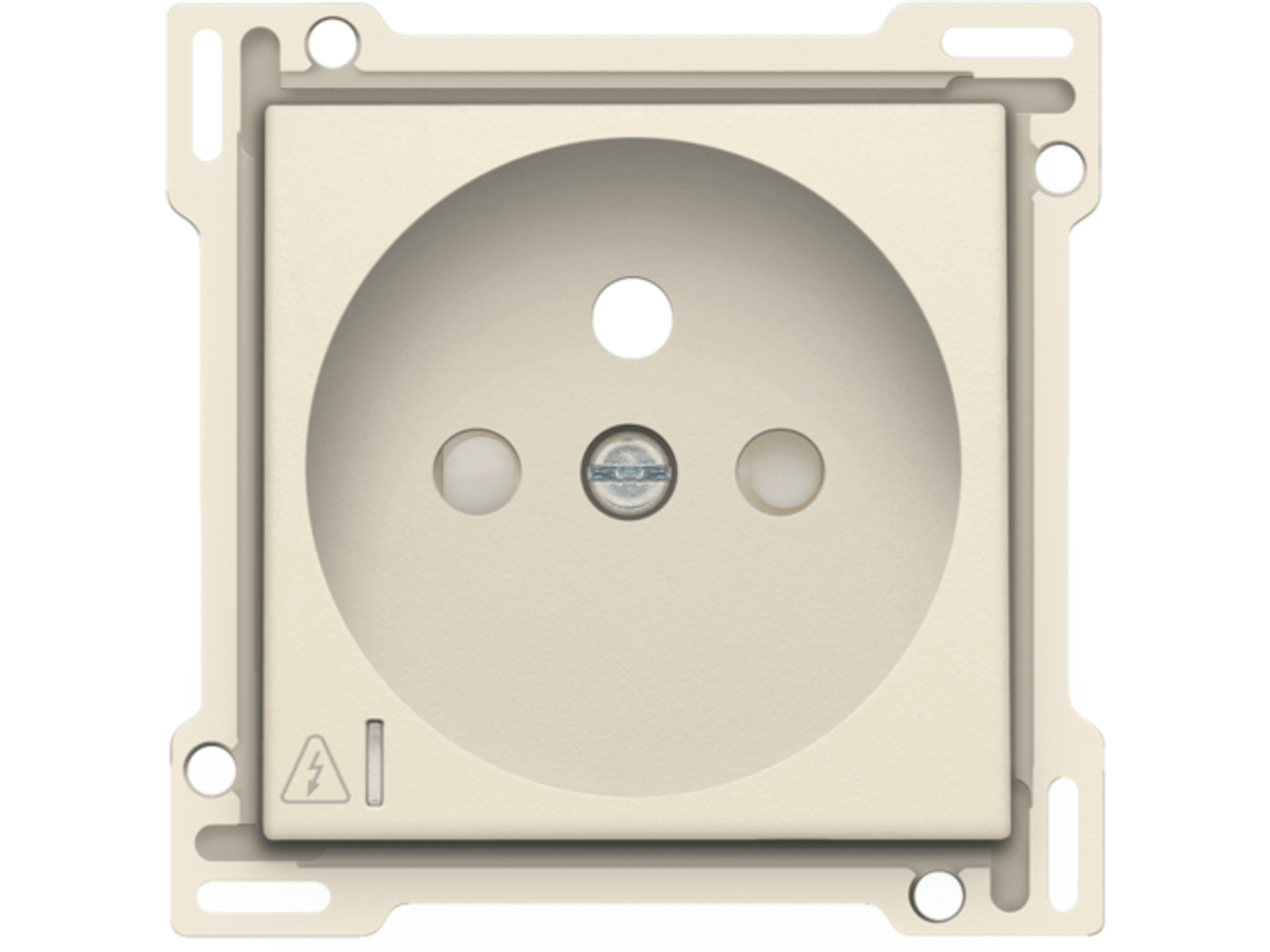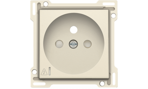 Centraalplaat voor inbouwstopcontact met penaarde, beschermingsafsluiters en klapdeksel. Deze centraalplaat dient gebruikt te worden op een stopcontact met overspanningsbeveiliging en met een inbouwdiepte van 28,5mm. Afwerkingskleur: cream.