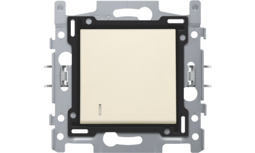 Samengestelde tweepolige controleschakelaar (sokkel en afwerkingsset). De sokkel is uitgerust met insteekklemmen en klauwbevestiging. Op de schakelaar zit een lens die kan werken met een ledmodule in verschillende kleuren. Afwerkingskleur: cream
