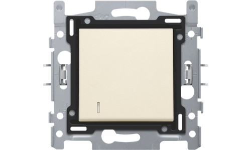 Samengestelde tweepolige controleschakelaar (sokkel en afwerkingsset). De sokkel is uitgerust met schroefklemmen en klauwbevestiging. Op de schakelaar zit een lens die kan werken met een ledmodule in verschillende kleuren. Afwerkingskleur: cream