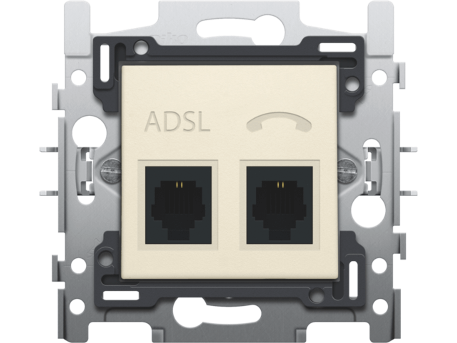 Sokkel voor klauwbevestigingen met centraalplaatje met 2 outlets voor ADSL/VDSL. Deze splitter kan ook gebruikt worden voor ADSL2, ADSL2+ en VDSL2. Afwerkingskleur: cream