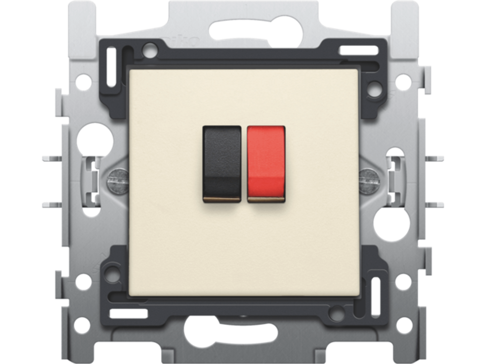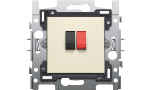 Samengestelde enkelvoudige luidsprekeraansluiting (sokkel en afwerkingsset). De sokkel is uitgerust met klauwbevestiging. De contactdoos heeft 1 ingang voor de de aansluiting van je luidsprekers. Afwerkingskleur: cream