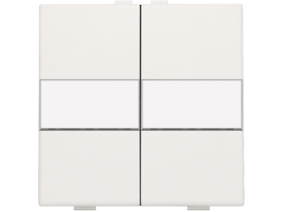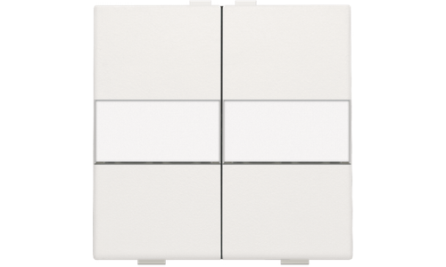 Een tweevoudige toets met ruimte voor het aanbrengen van een eigen tekst voor een busdrukknop. Afwerkingskleur: white.