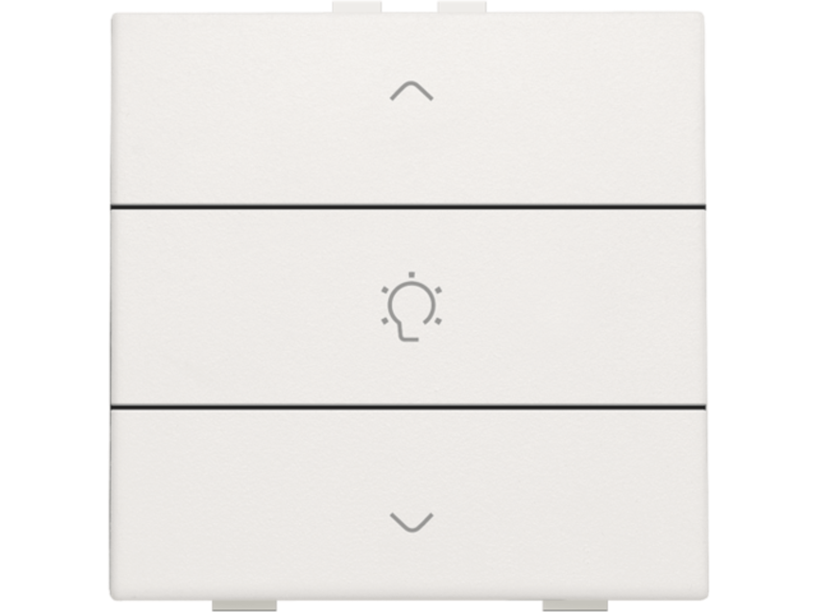Met deze drukknop dim je één lichtpunt of lichtkring. Hij wordt via een klikmechanisme op de muurprint bevestigd. Mechanisme inclusief toets. Afwerkingskleur: white.