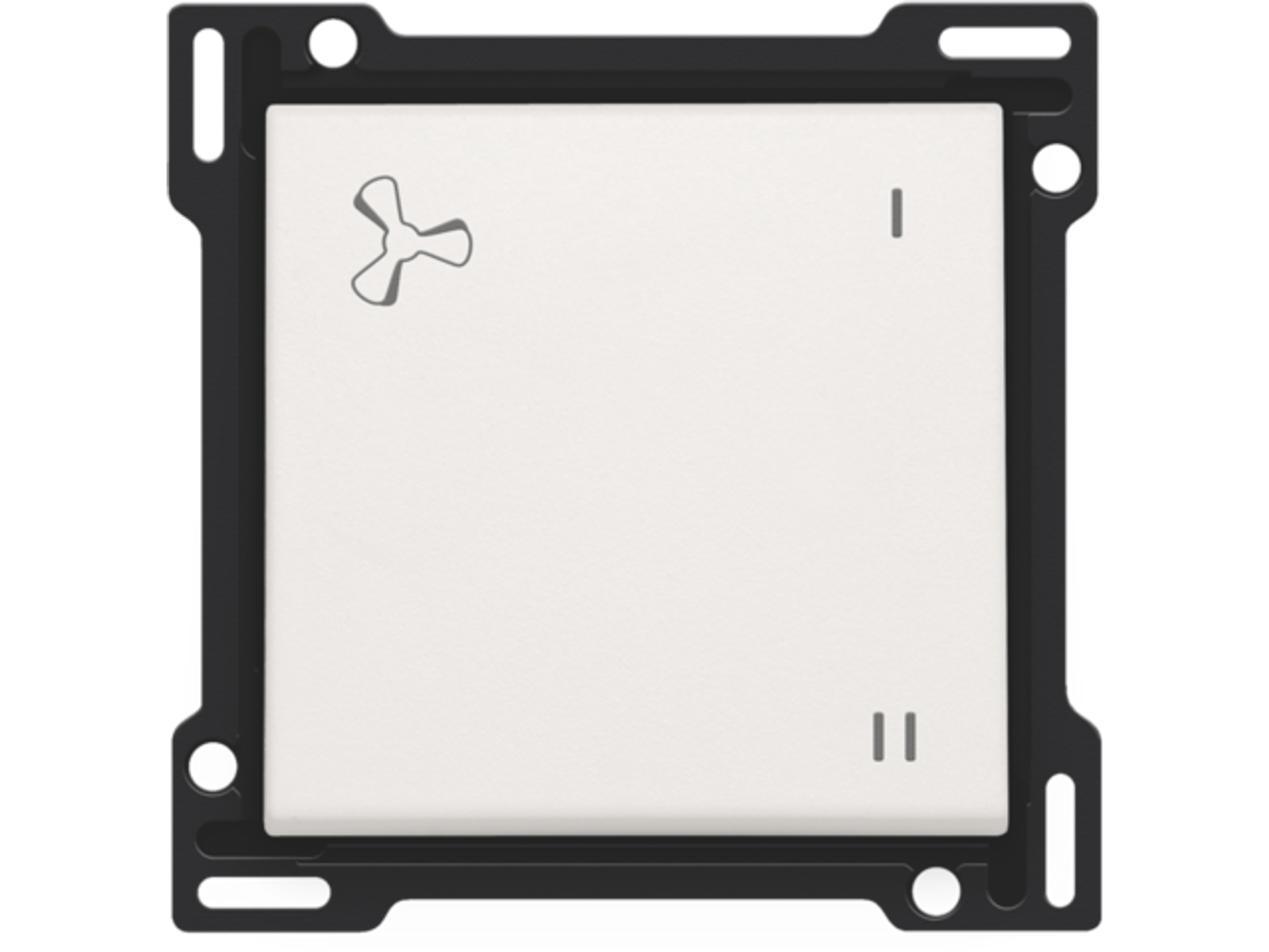 Centraalplaat met 1 toets met een ventilatie icoon aanduiding. Deze toets wordt gebruikt voor de bediening van mechanische gecontroleerde ventilatie.Afwerkingskleur: white.