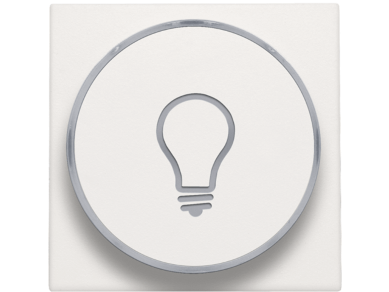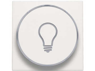 Centraalplaat met doorschijnende ring voor drukknop. De zijring met lampicoon laat toe dat de amberkleurige led aangeeft wanneer het licht geactivieerd is. Het kan ook als een soort signaallamp gebruikt worden. Afwerkingskleur: white.