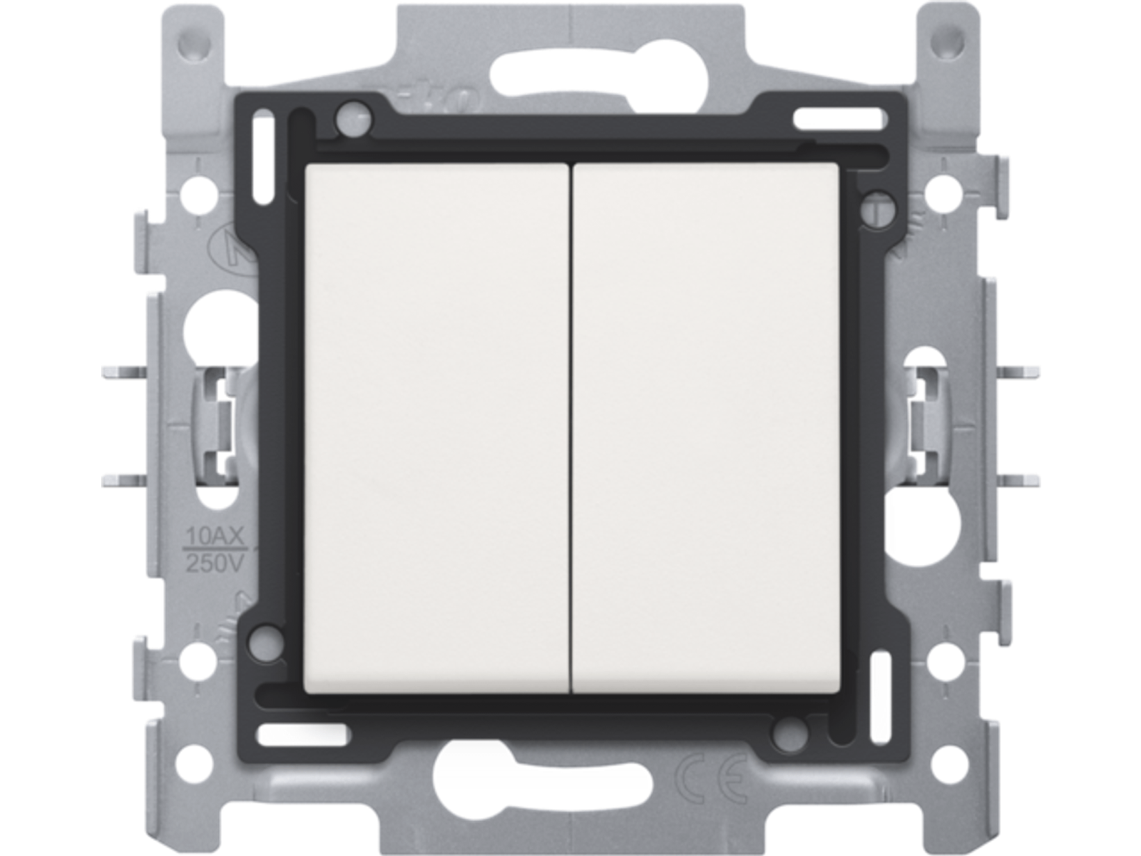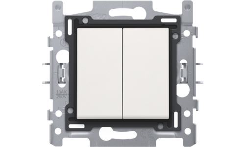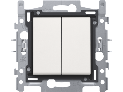 Samengestelde drukknop 250 V (sokkel en afwerkingsset). De drukknop wordt gebruikt voor 2 lichtpunten te bedienen. Afwerkingskleur: white