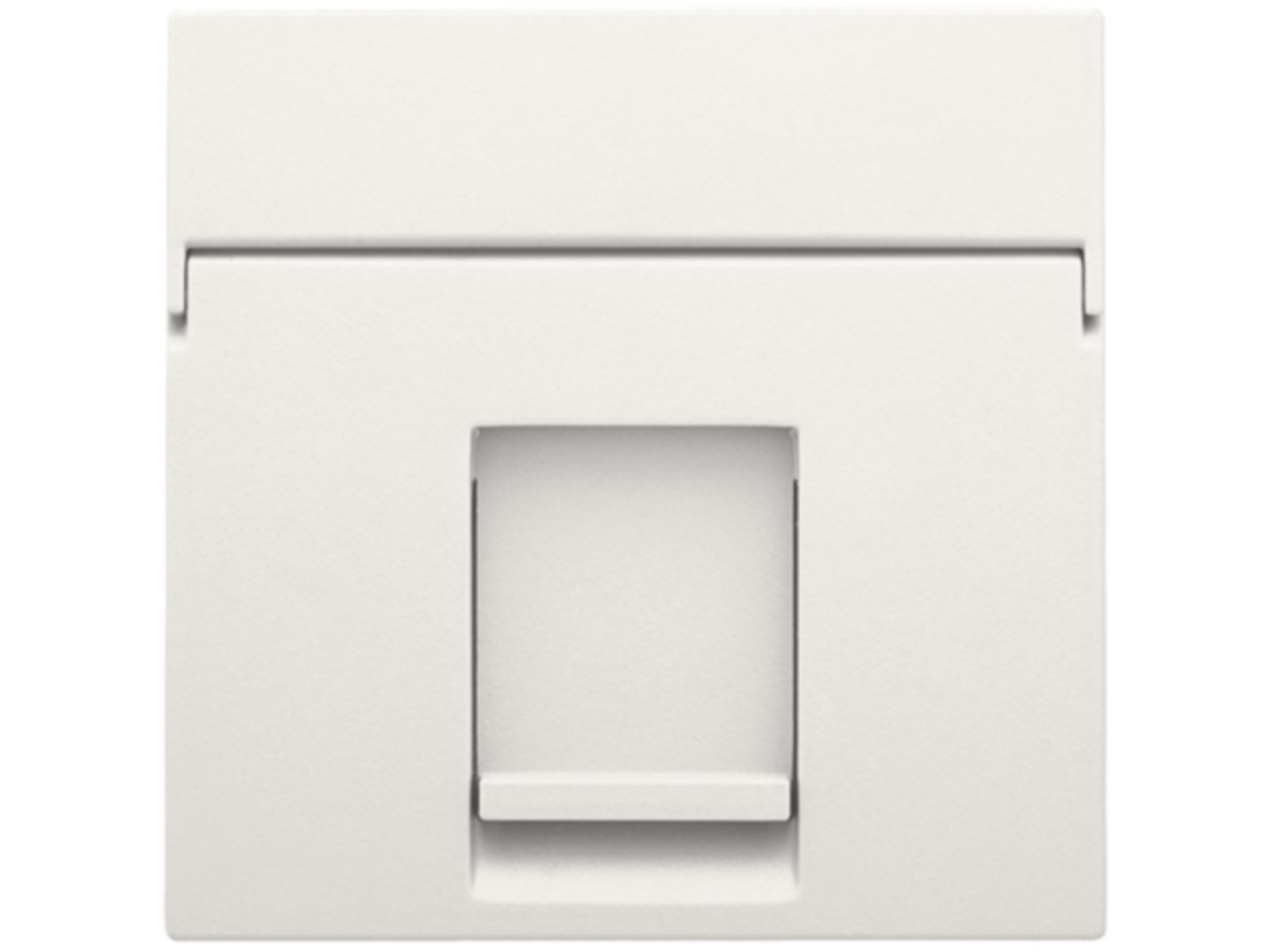 Centraalplaatje voor 1 RJ aansluiting UTP cat. 5E in een vlakke uitvoering. Afwerkingskleur: white.