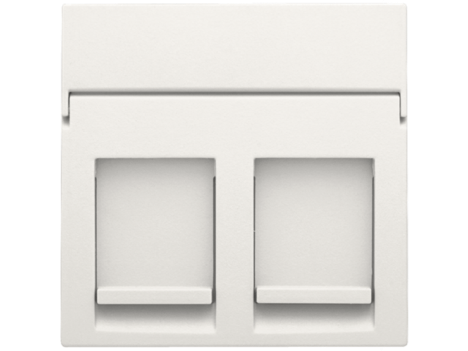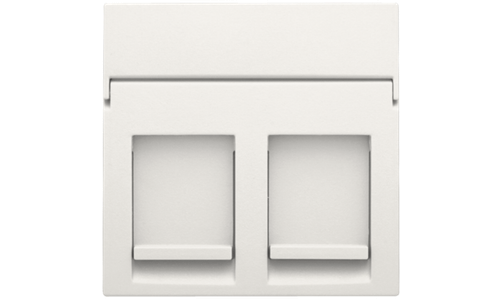 Centraalplaatje voor 2 RJ outlets in een vlakke uitvoering. De centraalplaat bevat een transparant tekstveld waarin je eenvoudig iconen of teksten kan aanbrengen. Afwerkingskleur: white.