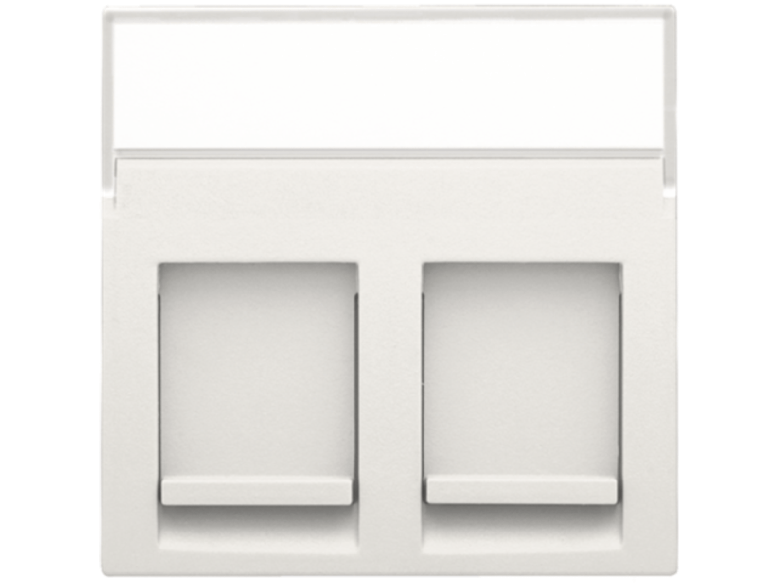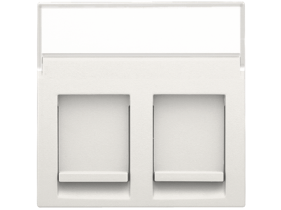 Centraalplaatje met transparant tekstveld in Niko Original White voor 2 RJ outlets in een vlakke uitvoering. In het tekstveld kan je iconen of teksten aanbrengen.
