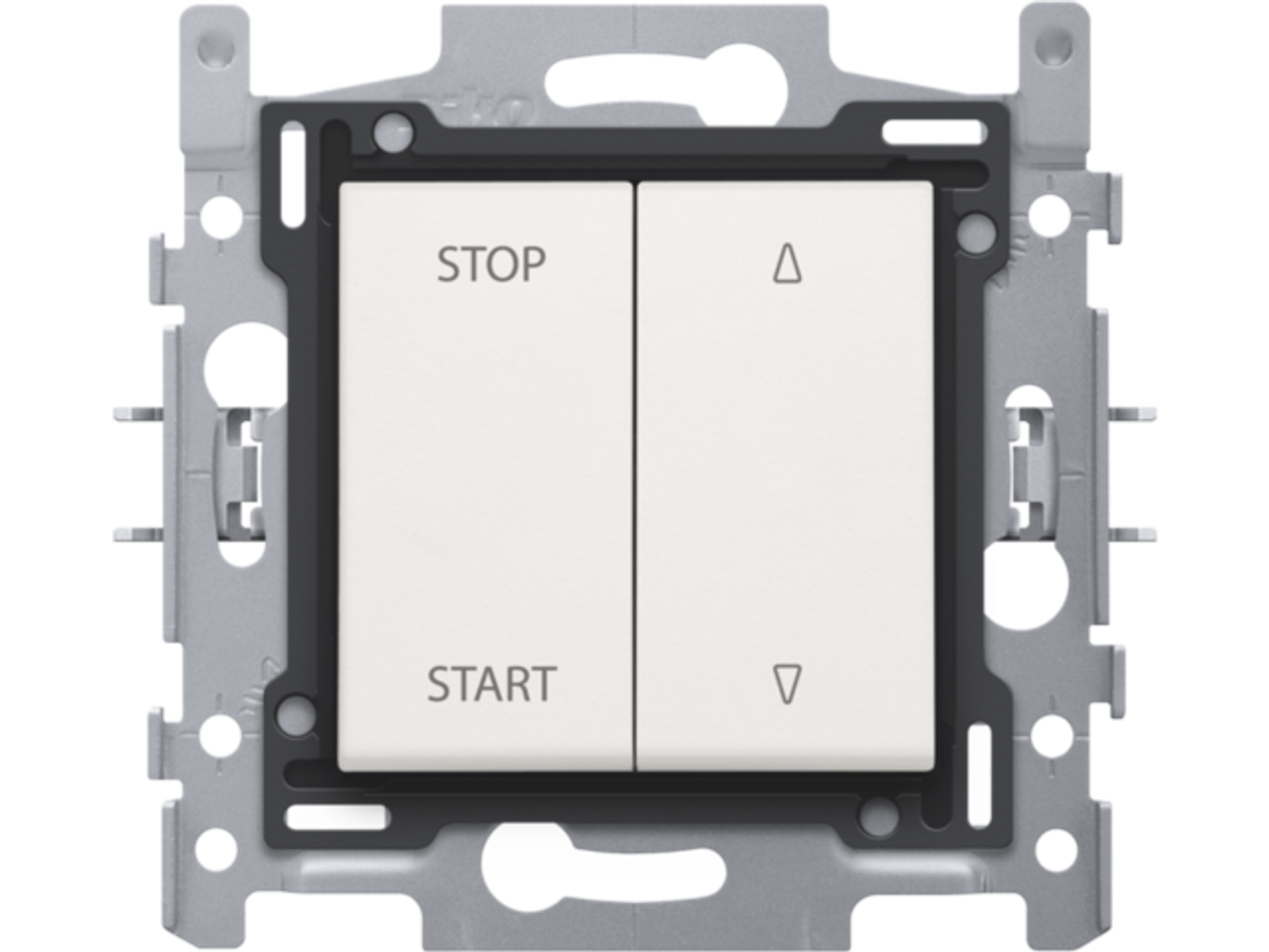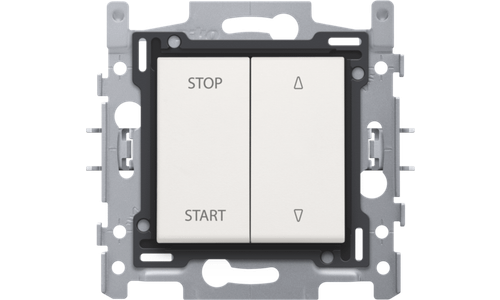 Volledig apparaat (mechanisme en afwerkingsset) voor een elektrisch gescheiden rolluikschakelaar. Afwerkingskleur: white