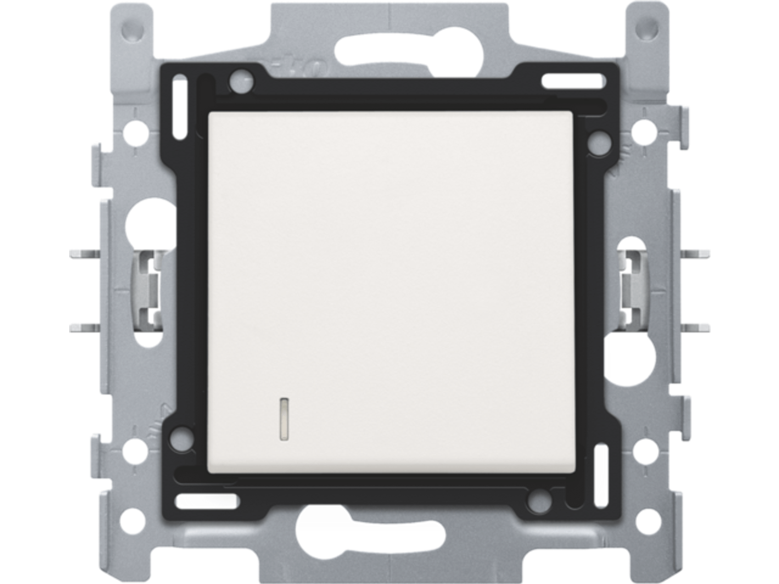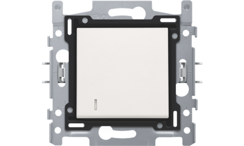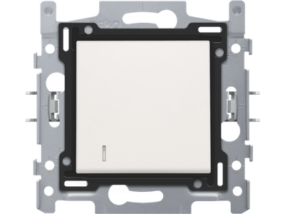 Samengestelde tweepolige controleschakelaar (sokkel en afwerkingsset). De sokkel is uitgerust met insteekklemmen en klauwbevestiging. Op de schakelaar zit een lens die kan werken met een ledmodule in verschillende kleuren. Afwerkingskleur: white