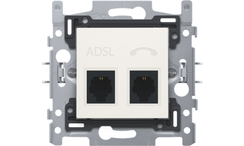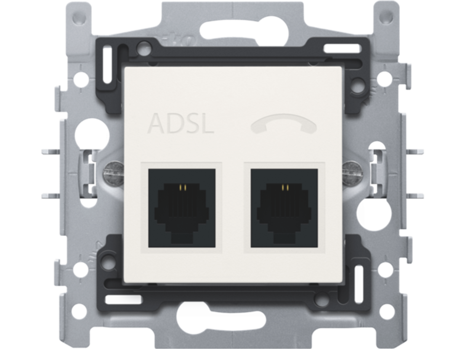 Sokkel voor klauwbevestigingen met centraalplaatje met 2 outlets voor ADSL/VDSL. Deze splitter kan ook gebruikt worden voor ADSL2, ADSL2+ en VDSL2. Afwerkingskleur: white