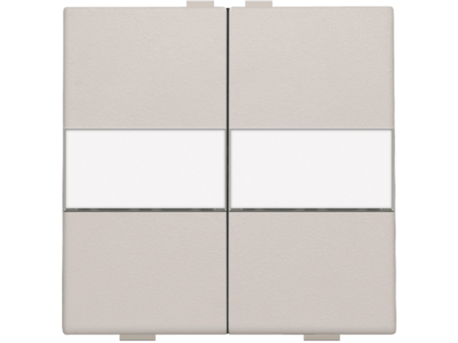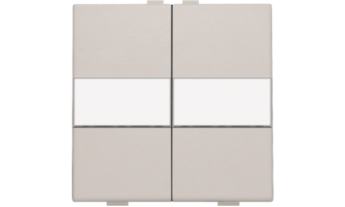 Een tweevoudige toets met ruimte voor het aanbrengen van een eigen tekst voor een busdrukknop. Afwerkingskleur: light grey.