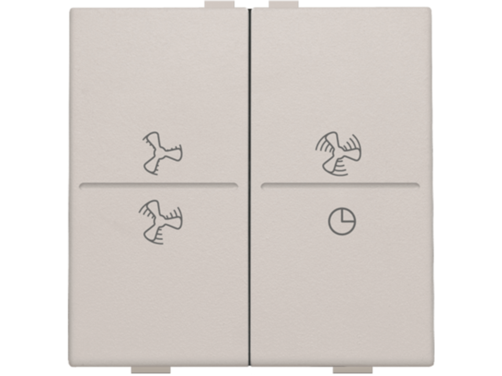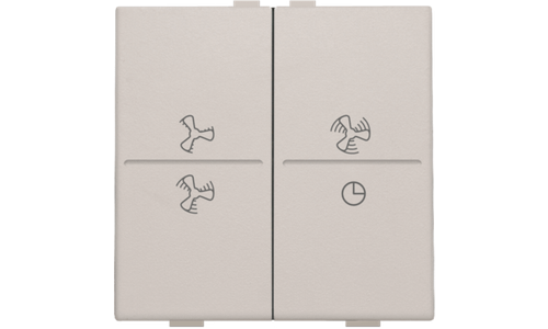 Een tweevoudige toets voor ventilatorbediening voor een busdrukknop. Afwerkingskleur: light grey.