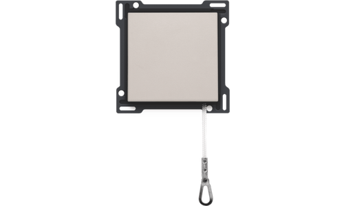 Centraalplaat met trekmechanisme voor drukknop. Door het treksysteem wordt het lichtpunt bediend. Deze toepassing wordt meestal gebruikt in slaapkamers. Afwerkingskleur: light grey.