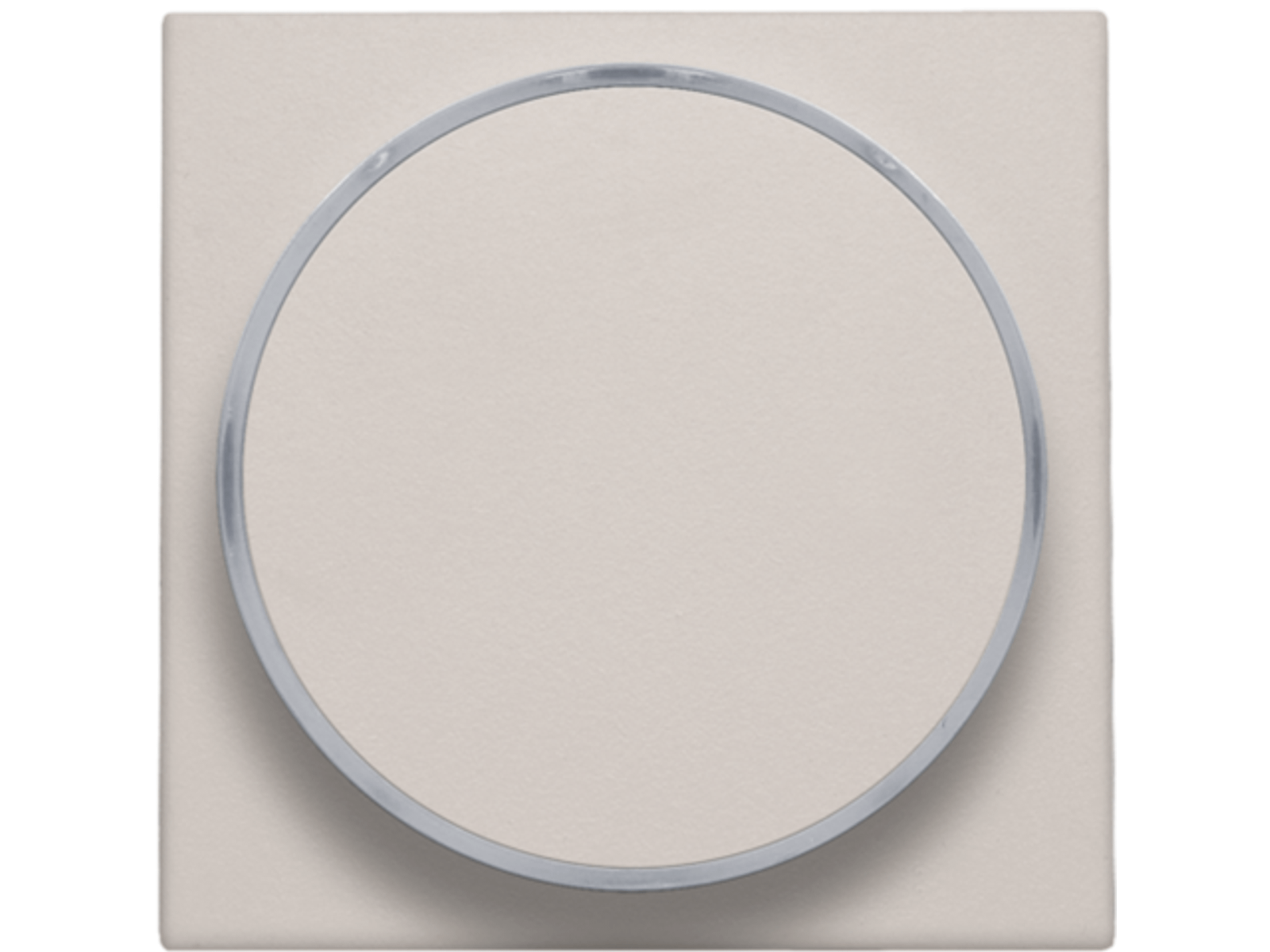 Centraalplaat met doorschijnende ring voor drukknop. De zijring laat toe dat de amberkleurige led aangeeft wanneer jet licht geactivieerd is. Het kan ook als een soort signaallamp gebruikt worden. Afwerkingskleur: light grey.