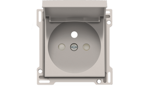 Centraalplaat voor inbouwstopcontact met penaarde, beschermingsafsluiters en klapdeksel. Deze centraalplaat dient gebruikt te worden op een stopcontact met inbouwdiepte van 28,5mm. Afwerkingskleur: light grey.