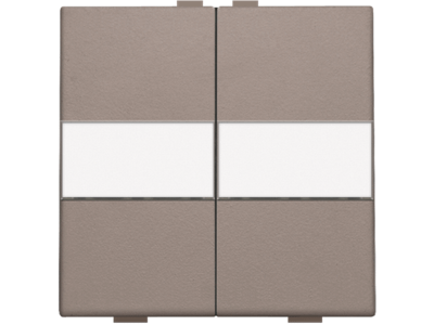 Een tweevoudige toets met ruimte voor het aanbrengen van een eigen tekst voor een busdrukknop. Afwerkingskleur: greige.