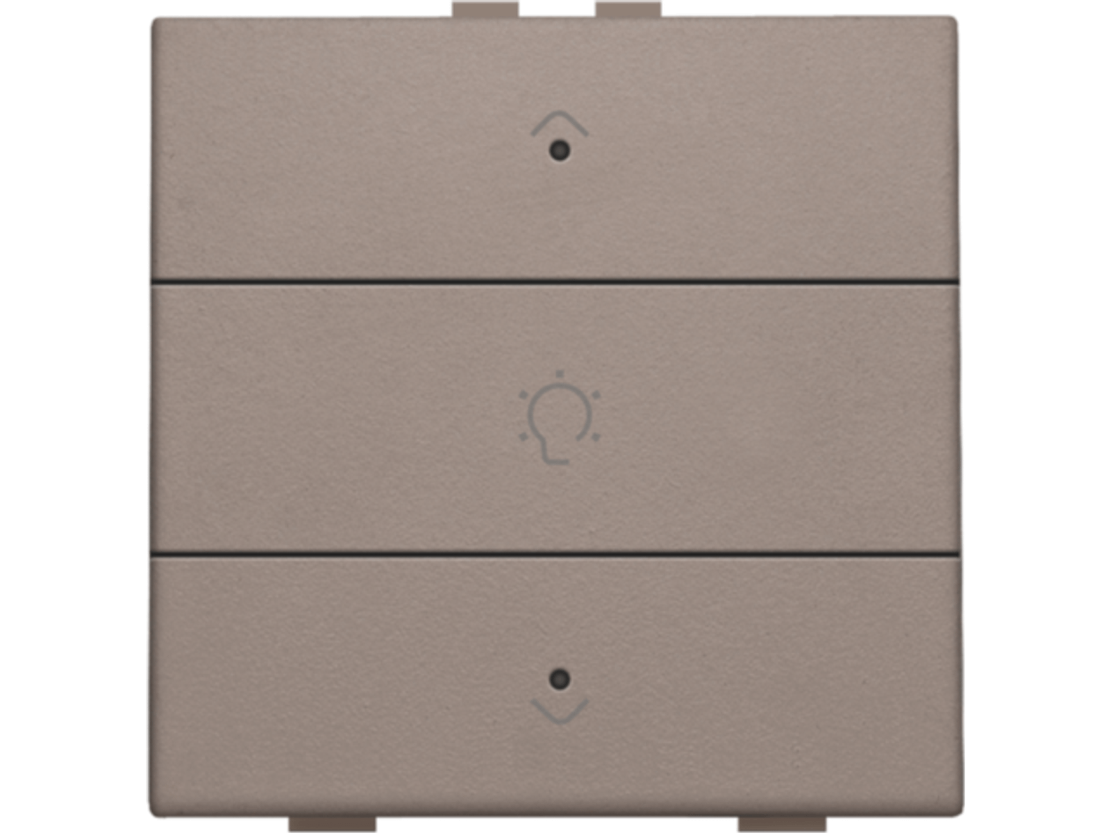 Met deze drukknop dim je één lichtpunt of lichtkring. Hij wordt via een klikmechanisme op de muurprint bevestigd. Een led geeft aan of het licht op- of neergedimd is. Mechanisme inclusief toets. Afwerkingskleur: greige.