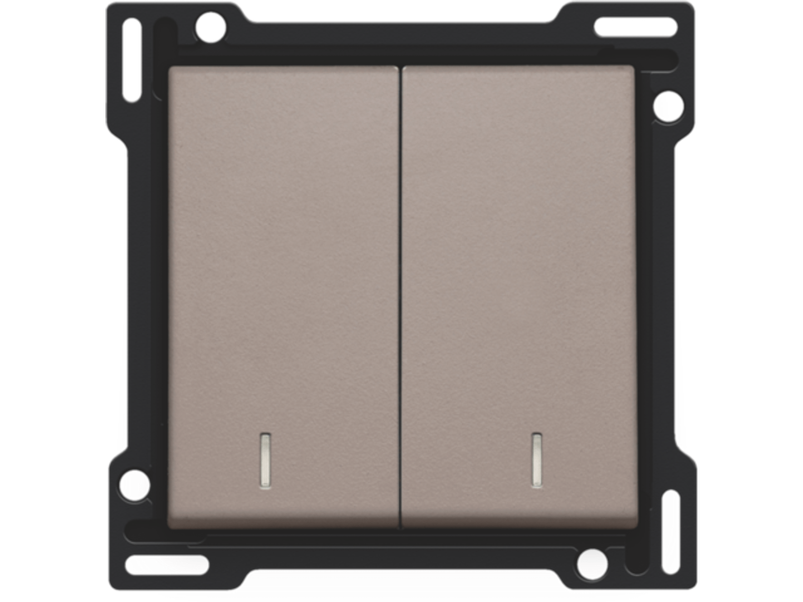 Centraalplaat met 2 toetsen met telkens een eigen lens. Hiermee kan je vlot verschillende lichtpunten bedienen in 1 of meerdere ruimtes. Achter de lens kan je een compacte ledmodule plaatsen zodat je vlot ziet wanneer een licht ingeschakeld is. Afwerkingskleur: greige.