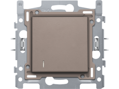 Samengestelde inbouwschakelaar (sokkel en afwerkingsset). De sokkel is uitgerust met insteekklemmen en klauwbevestiging. Deze schakelaar wordt bijna exclusief gebruikt in hotelkamers. Aan de bovenkant van de schakelaar kan je de hotelkaart inbrengen waarbij door middel van de lens aangeven wordt dat je de lichten kunt bedienen in je kamer. Afwerkingskleur: greige
