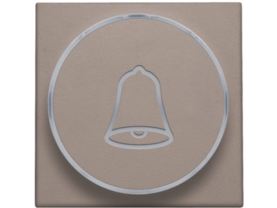 Centraalplaat met doorschijnende ring voor drukknop. De zijring met belicoon laat toe dat de amberkleurige led aangeeft wanneer het licht geactivieerd is. Het kan ook als een soort signaallamp gebruikt worden. Afwerkingskleur: greige.