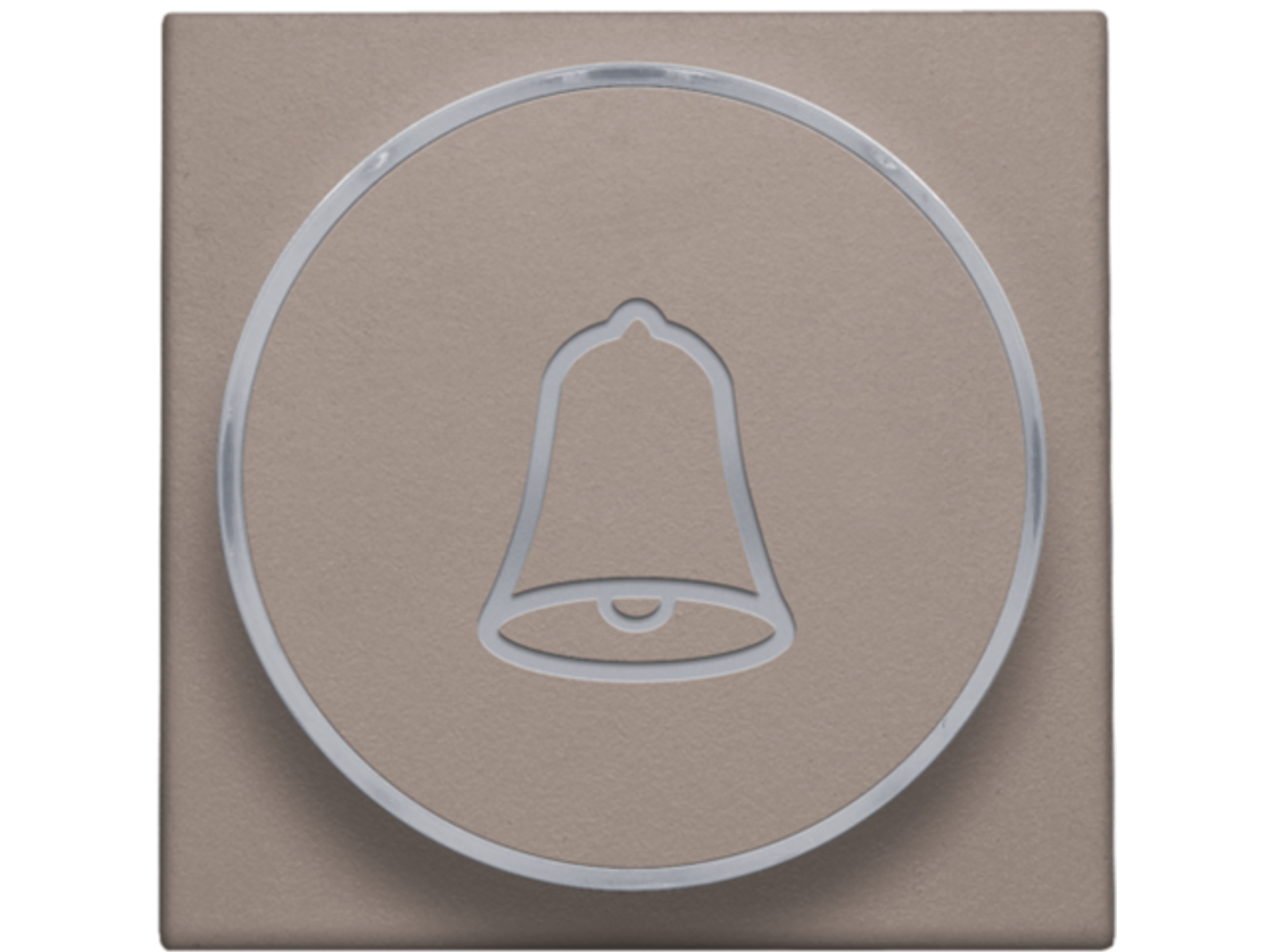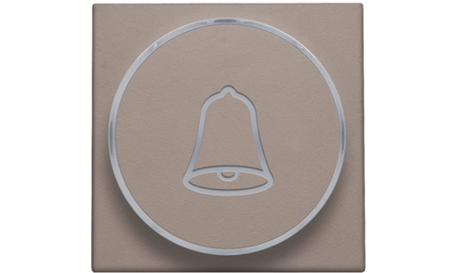 Afwerkingsset met doorschijnende ring met belsymbool voor drukknop 6 A met amberkleurige led met E10-lampvoet, greige