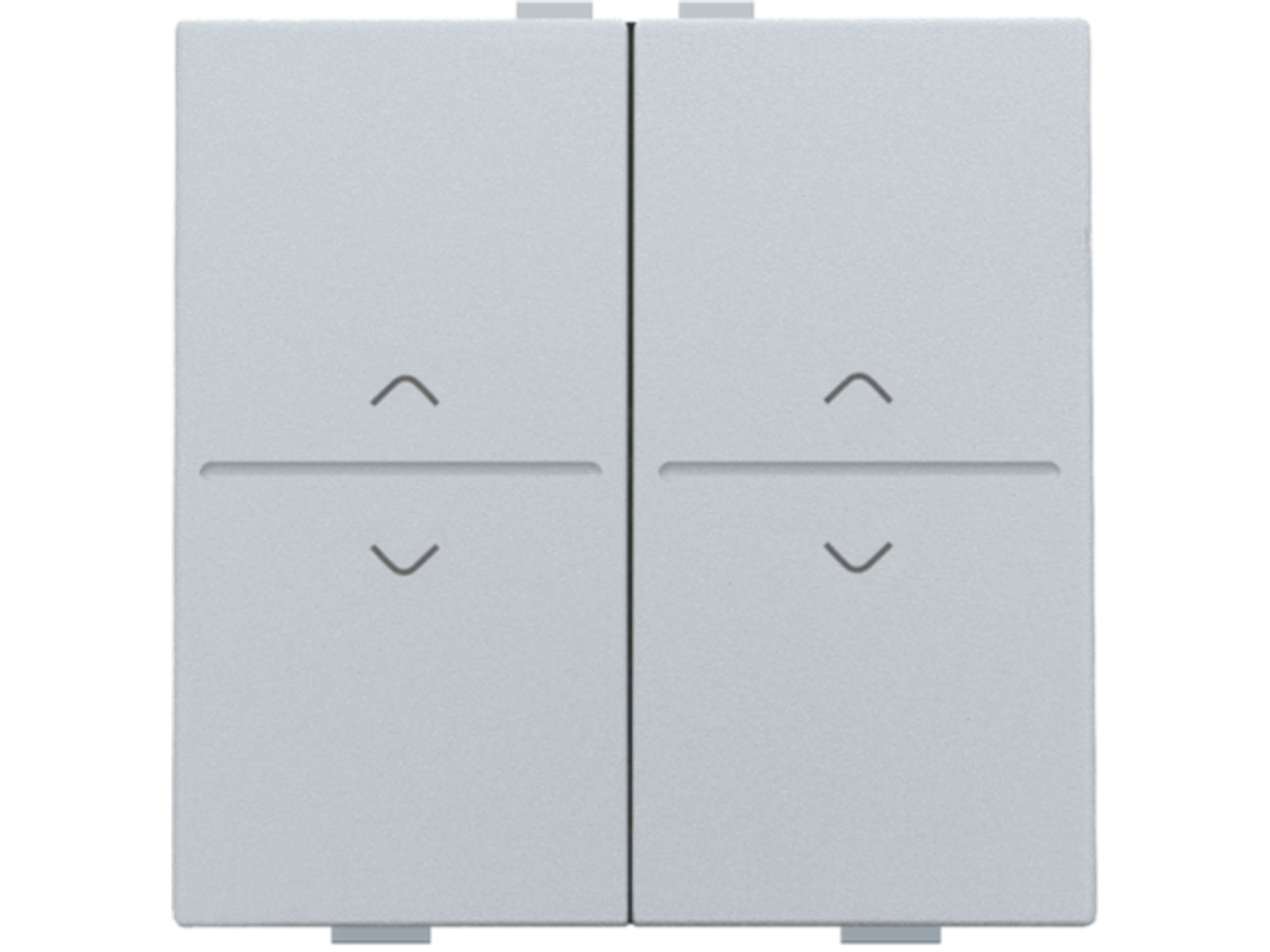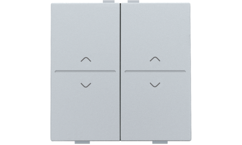 Een tweevoudige toets met symbool op en neer, voor een busdrukknop. Afwerkingskleur: sterling.